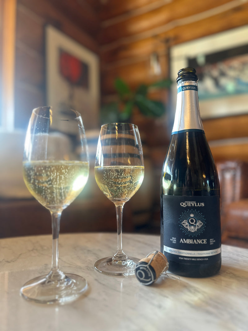 Ambiance is a beautiful Traditional Method Sparkling, brut nature, wild ferment base, 22 months on lees, and made with 100% Chardonnay.